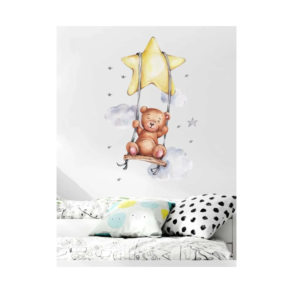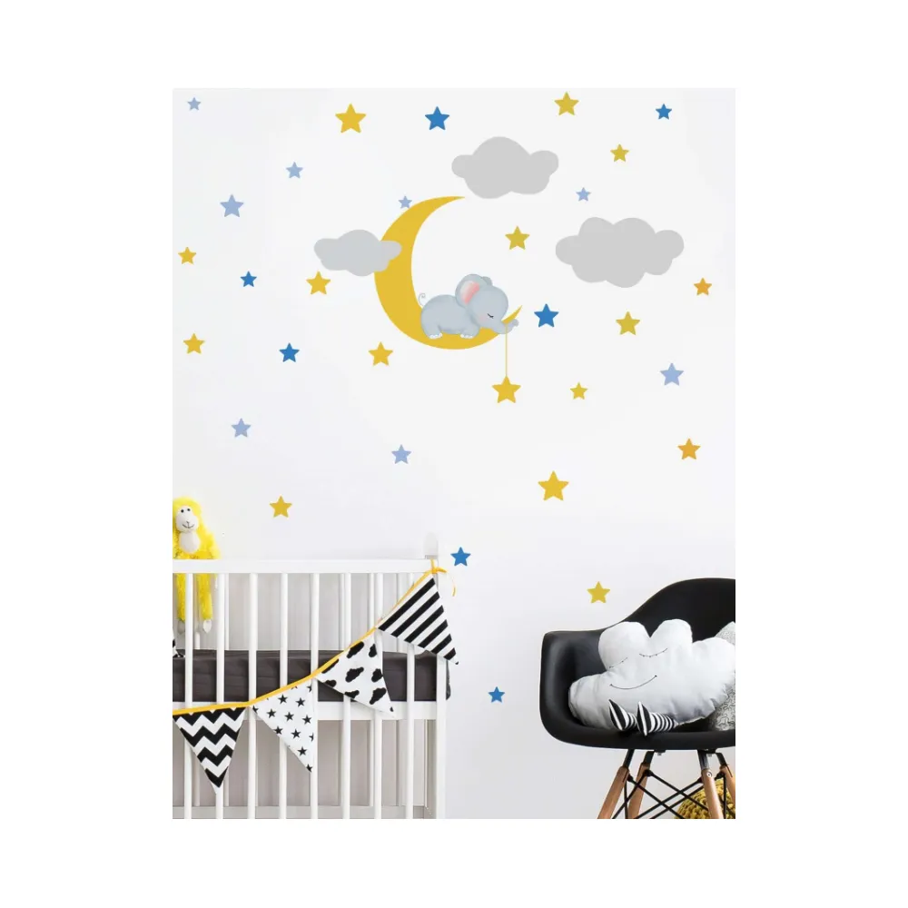 Sticker Perete Autocolant Elefant pe Luna si Stelute