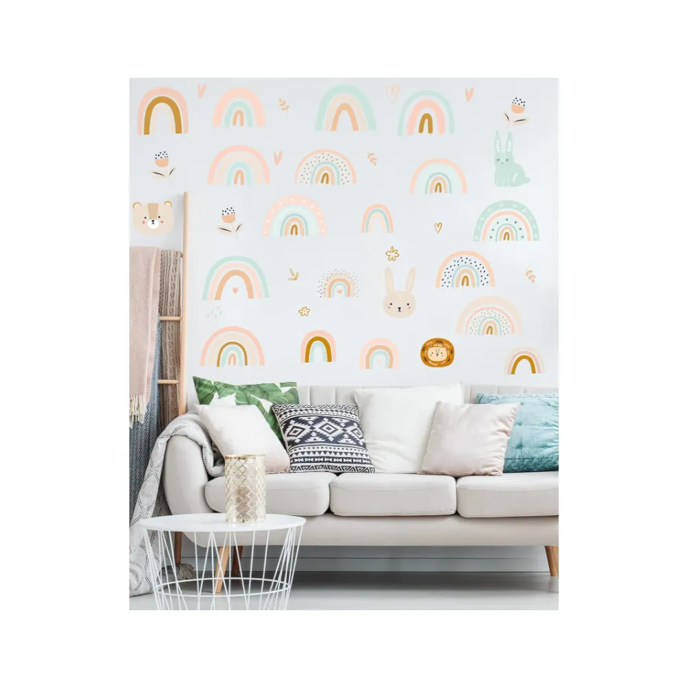 Sticker Perete Autocolant Elefant, Panda, Vulpe si Iepuras - 70X70cm