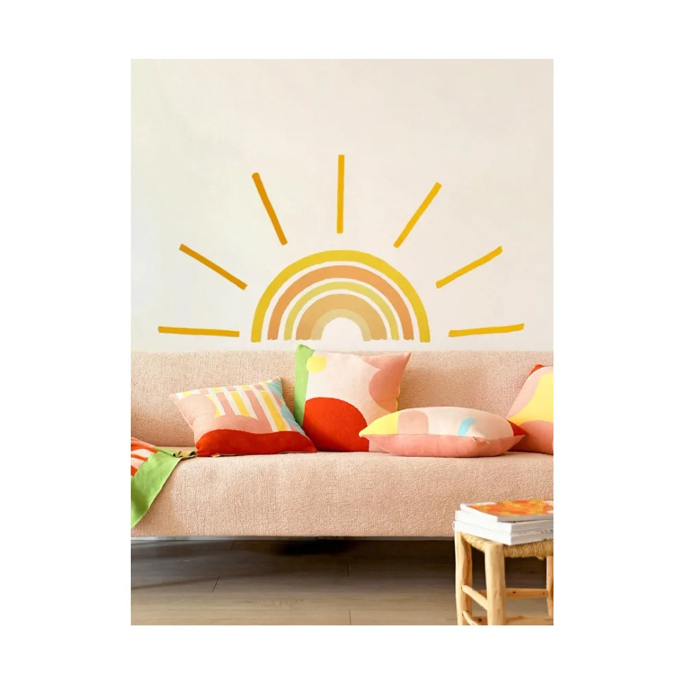 Sticker Perete Autocolant cu Centimetru pentru Copii -Balon cu Aer Cald si Curcubeu