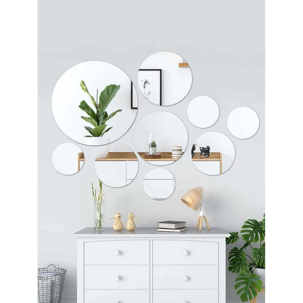 Set 9 Oglinzi Deorative Audoadezive, Forma Circulara, Diametru 10, 15, 18 si 20 cm