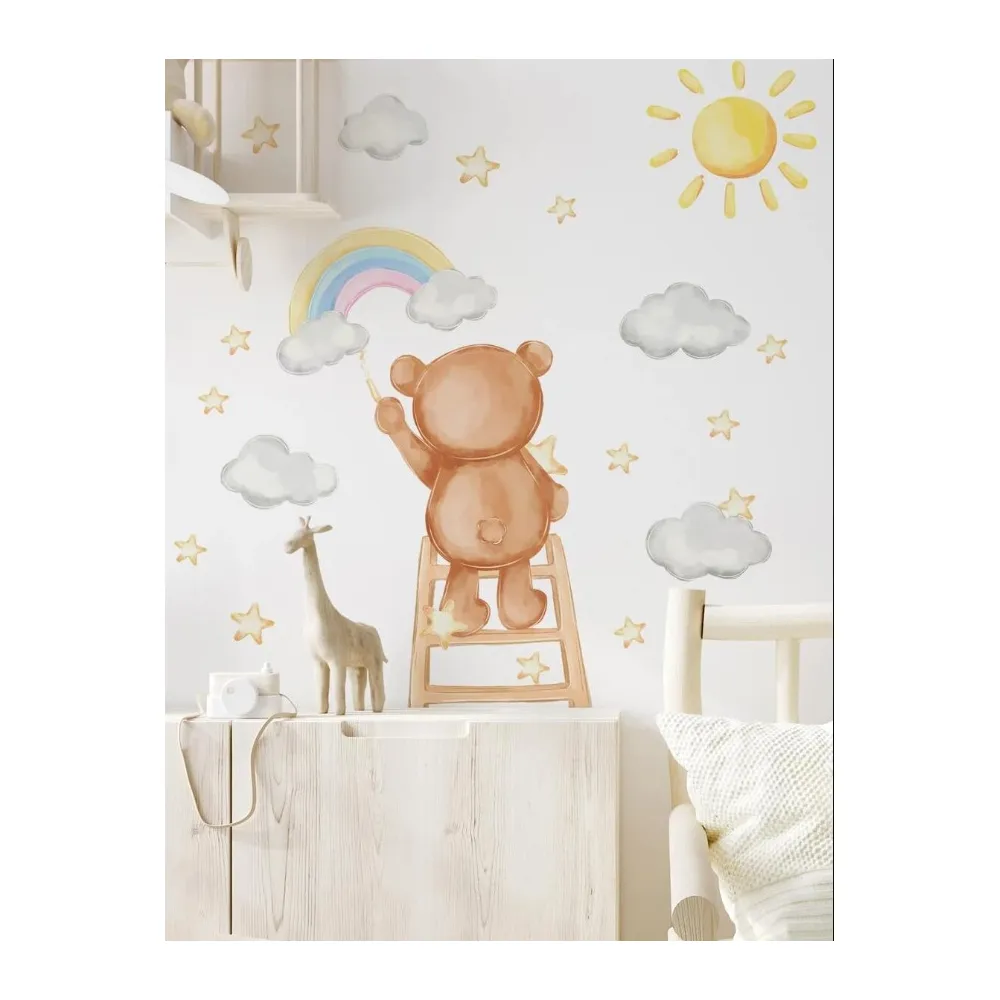Sticker Perete Autocolant Ursulet si Curcubeu - 63 x 66 cm