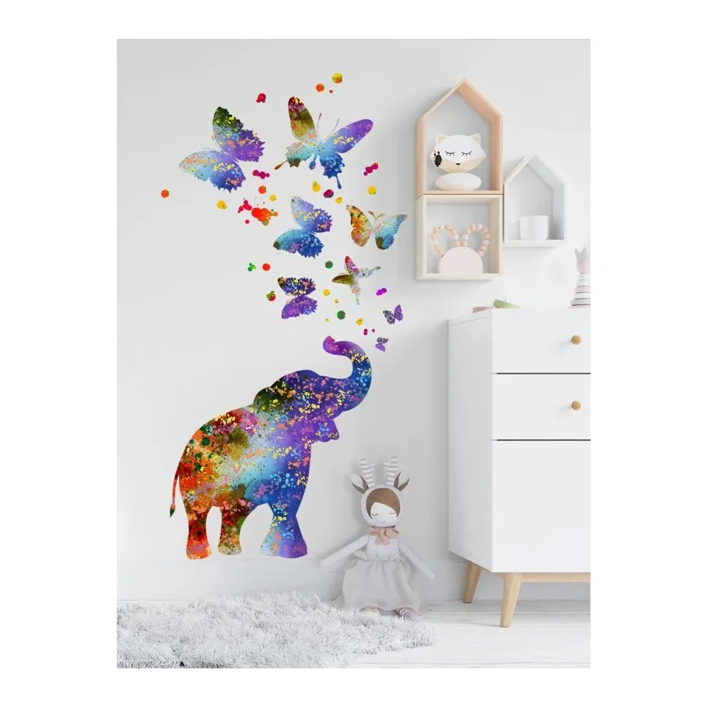 Sticker Perete Autocolant Elefant si Fluturi 50x90cm