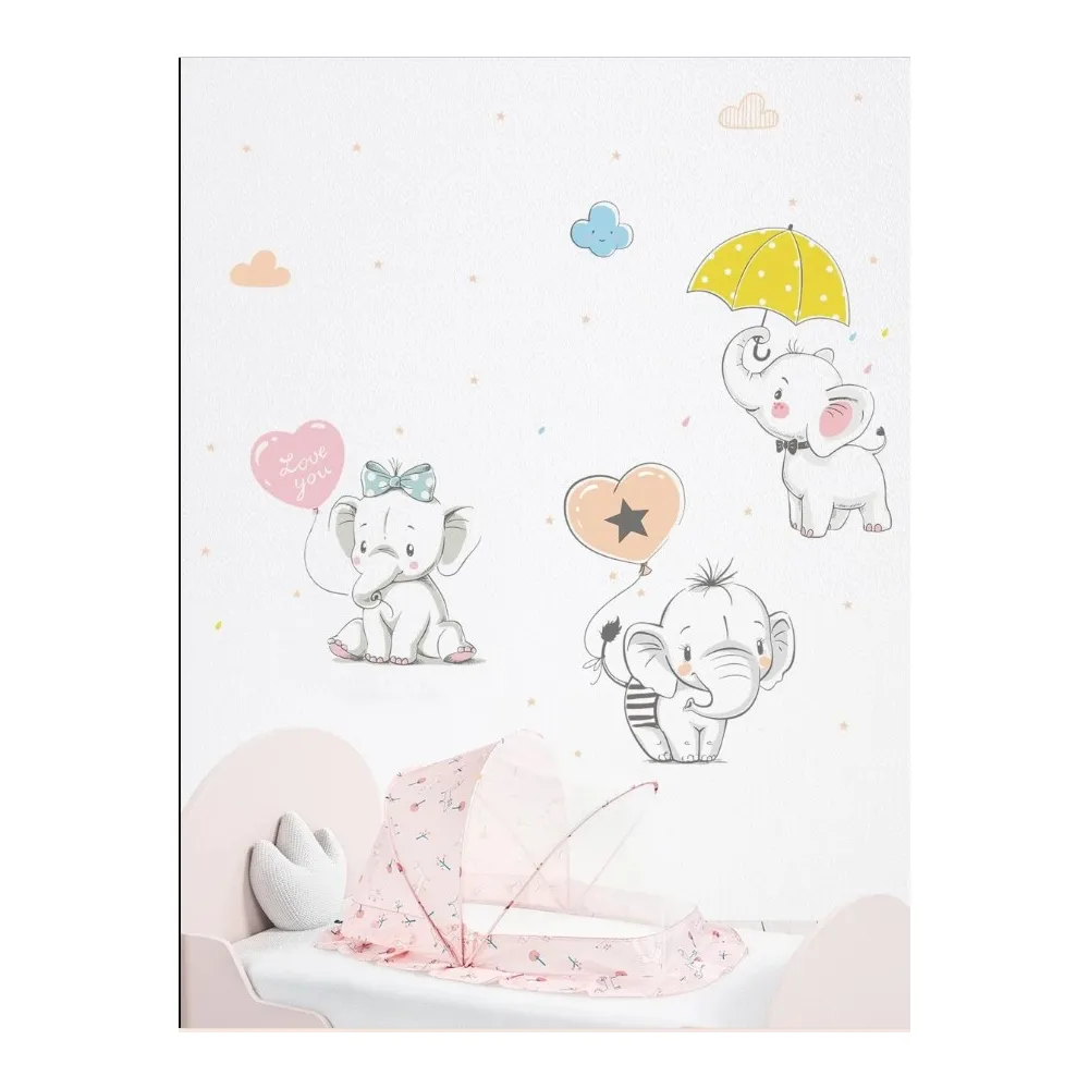 Sticker Perete Autocolant Elefanti in Ploaie 42x68cm