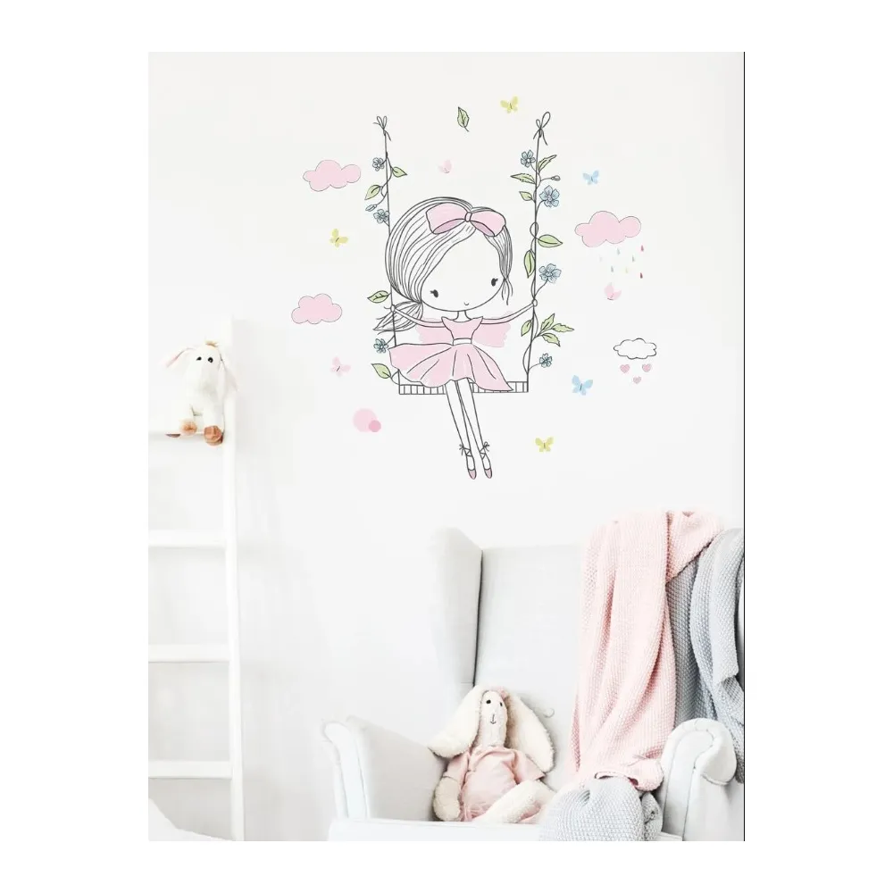 Sticker Perete Autocolant Fetita in Leagan 62x65cm