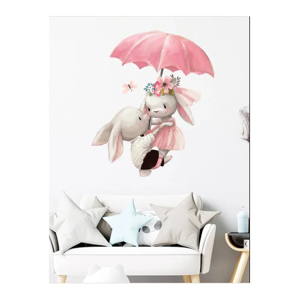 Sticker Perete Autocolant Iepurasi sub Umbrela 30x60cm
