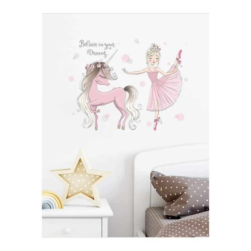 Sticker Perete Autocolant Unicorn si Fetita 43x56cm