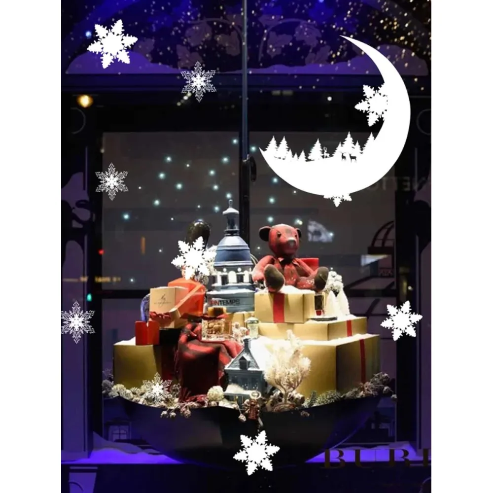 Sticker Geam Craciun Semiluna si Fulgi de Nea 25x35cm