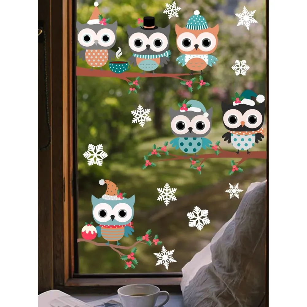 Sticker Geam Craciun Bufnite pe Crengi 27x30cm