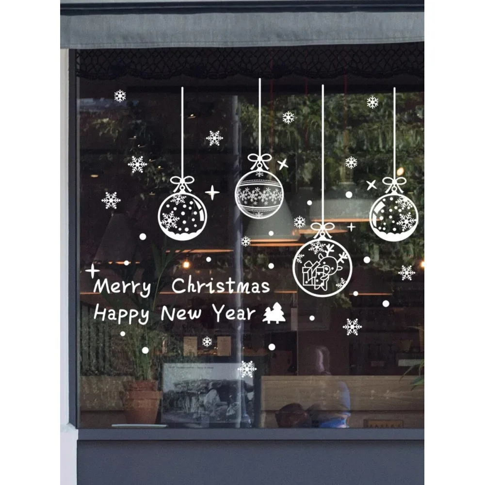 Sticker Geam Craciun Globuri Albe si Fulgi de Nea 95x108cm