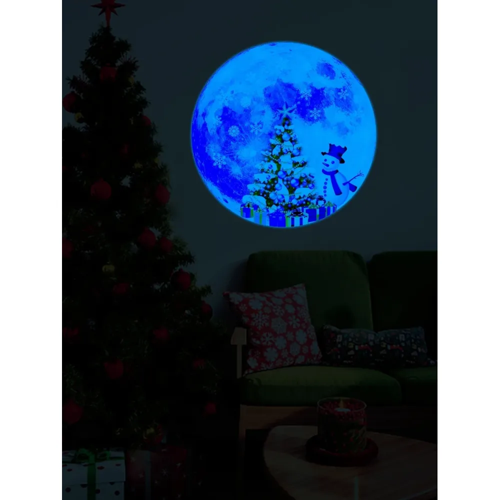 Sticker Geam Fosforescent Glob de Craciun cu Om de Zapada 20x20cm