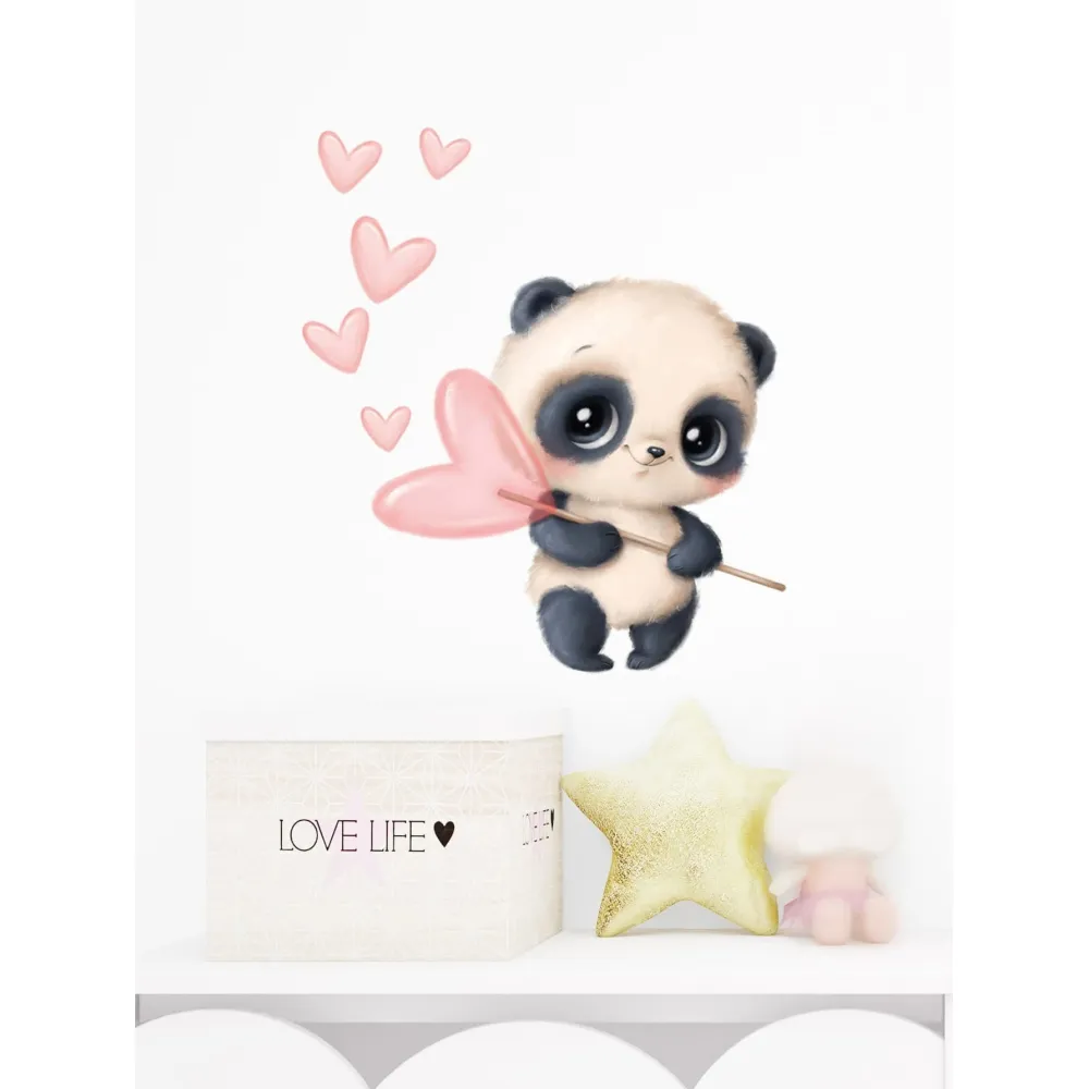 Sticker Perete Autocolant Bebe Ursulet Panda cu Inimioare 42x40cm