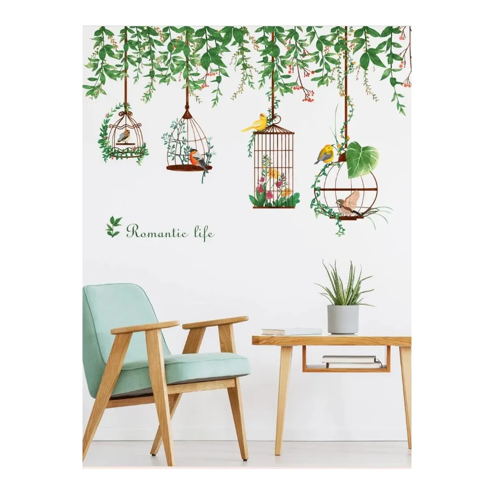 Sticker Perete Autocolant Pasari in Colivie 62x95cm
