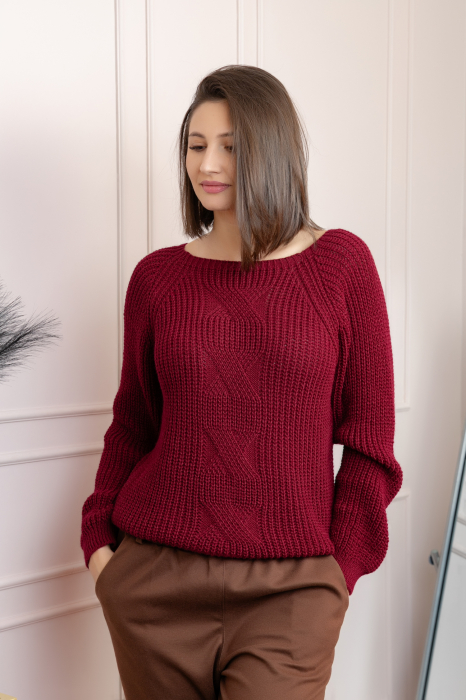 Pulover gros Sydney din tricot moale cu model impletit - Grena