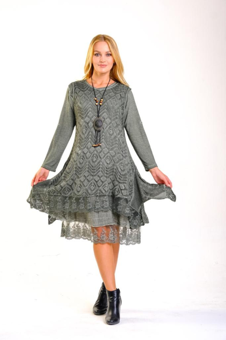 Rochie coniac boho chic tricotata cu detaliu perforat