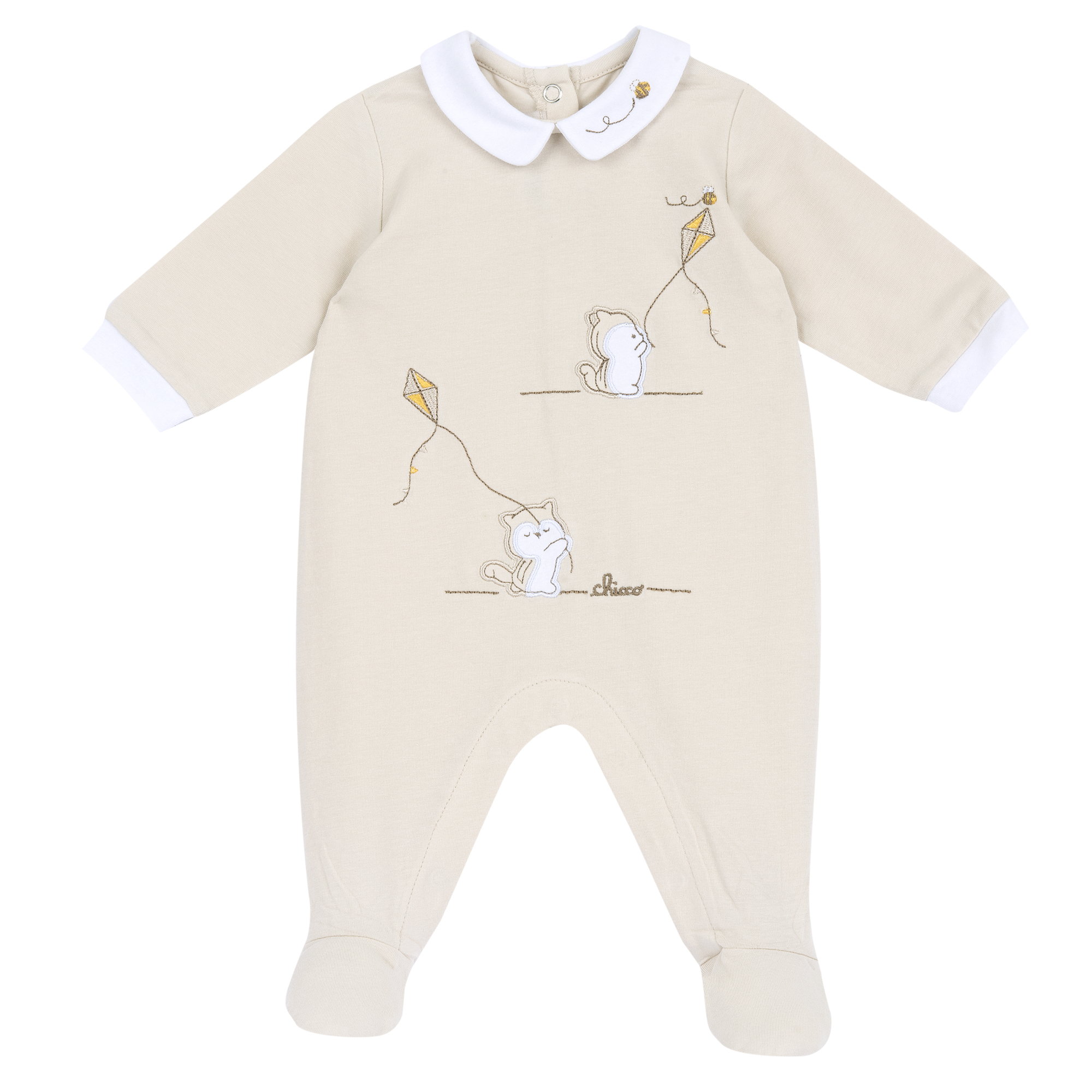 Salopeta bebelusi Chicco deschidere la scutec, Bej cu model, 01463-70MFCI