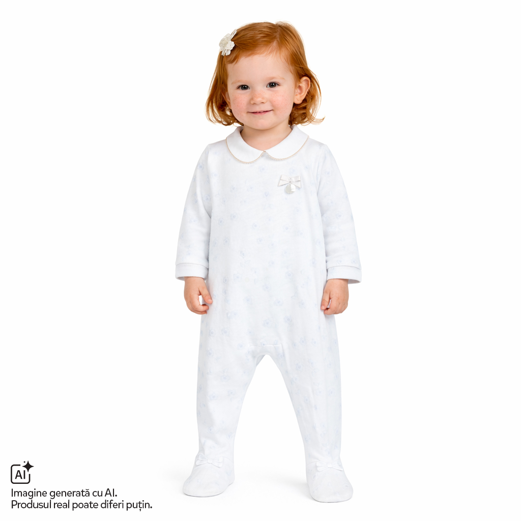 Salopeta bebelusi Chicco deschidere in fata, Alb cu model, 01133-70MFCI