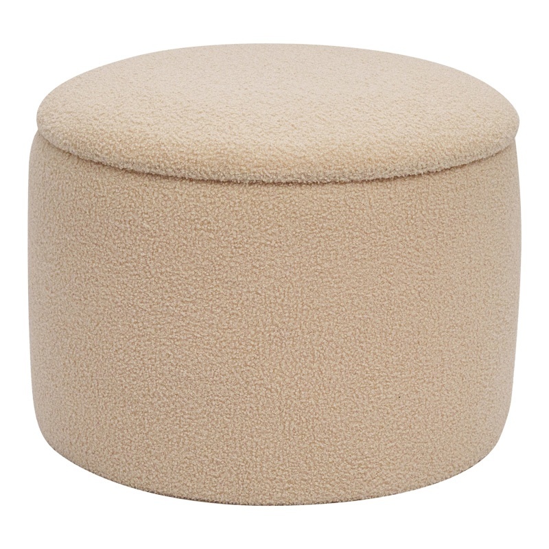 Taburet cu depozitare Ottoman Roundy boucle Bej 55x55x41.5 cm