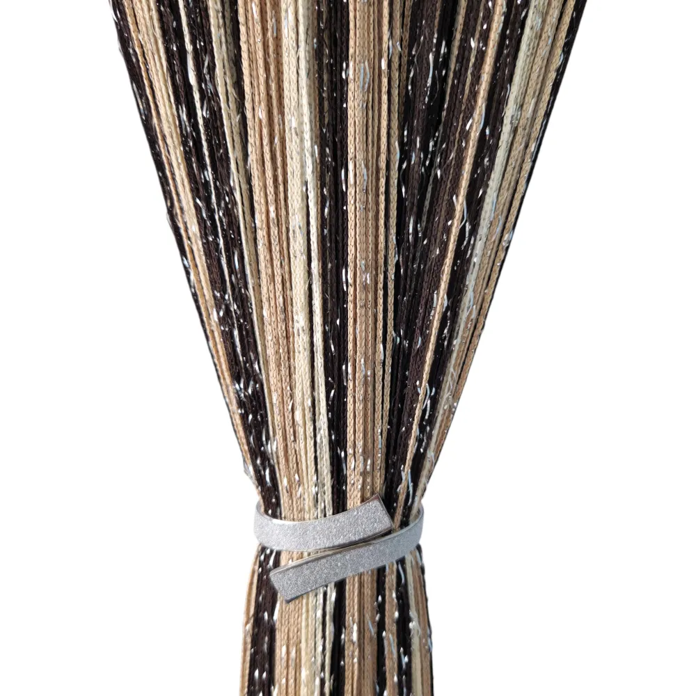 Perdea Decorativa Cream, Maro Deschis si Inchis cu Franjuri si Insertii Argintii, 3x3m - COL3