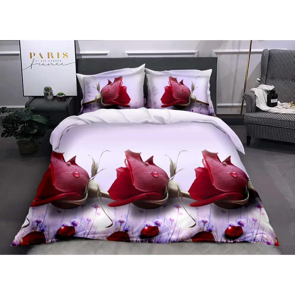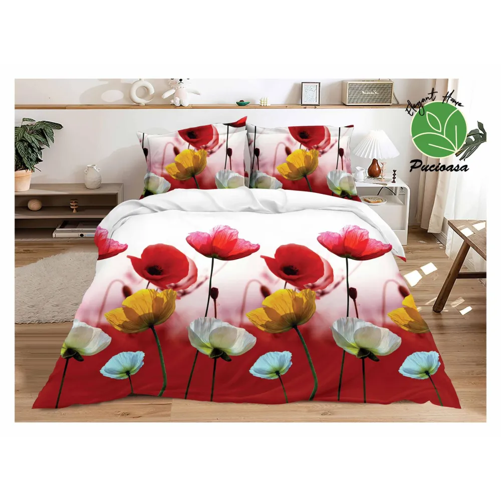 Lenjerie de Pat Bumbac Satinat 3D cu 4 Piese- SIPRB-564