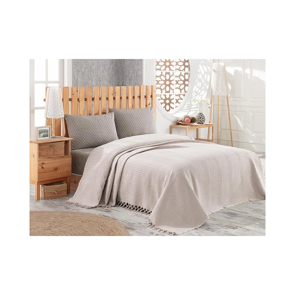 Set Cuvertura Pat Catifea, Bej -LIM20