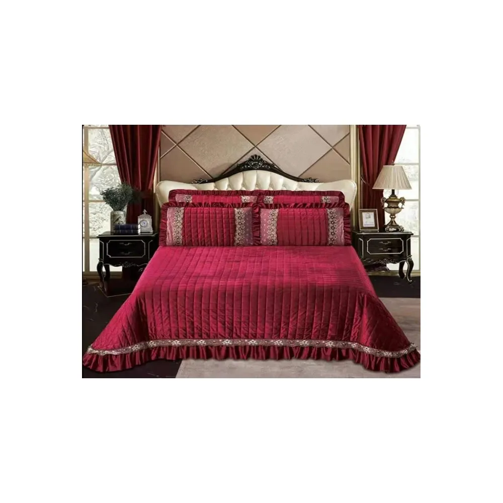 Set Cuvertura Pat Catifea -JO137 Bordo