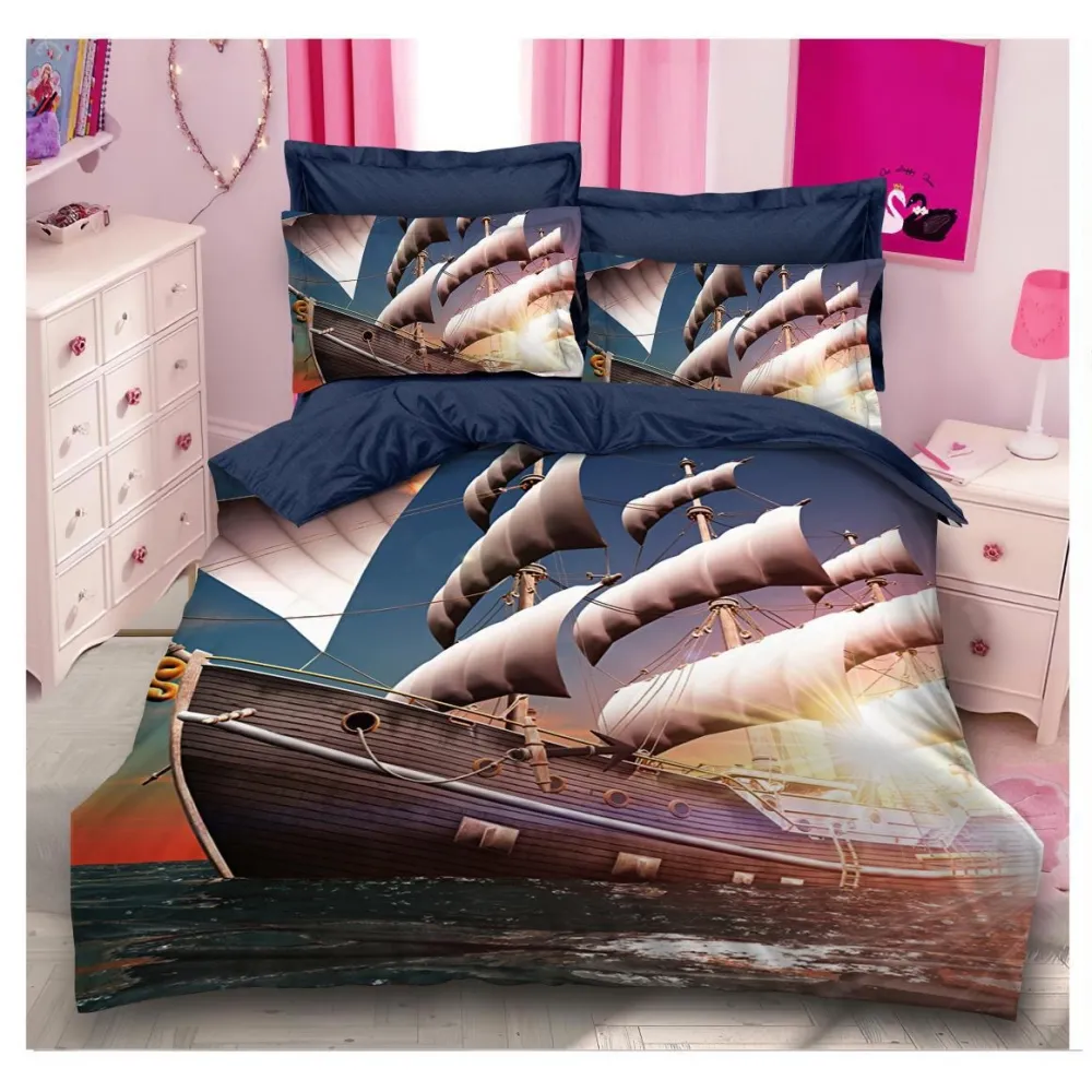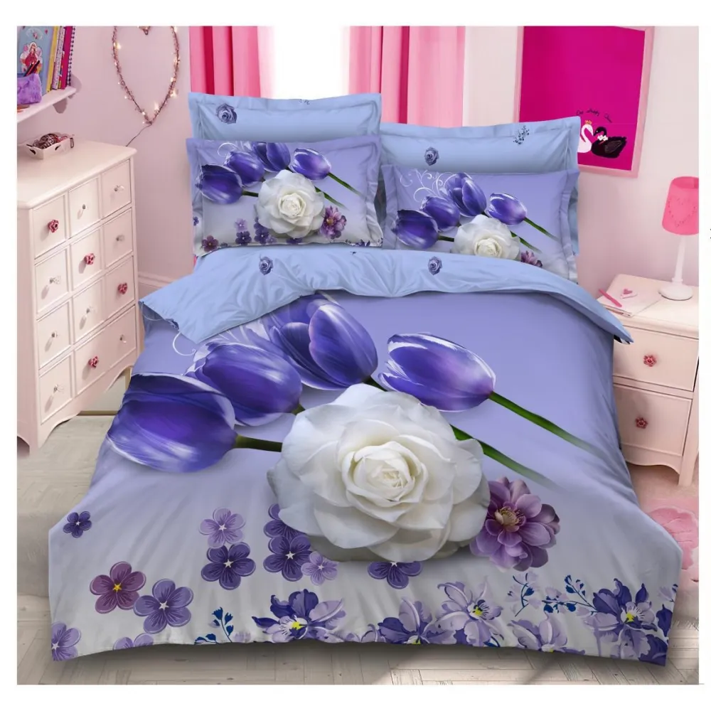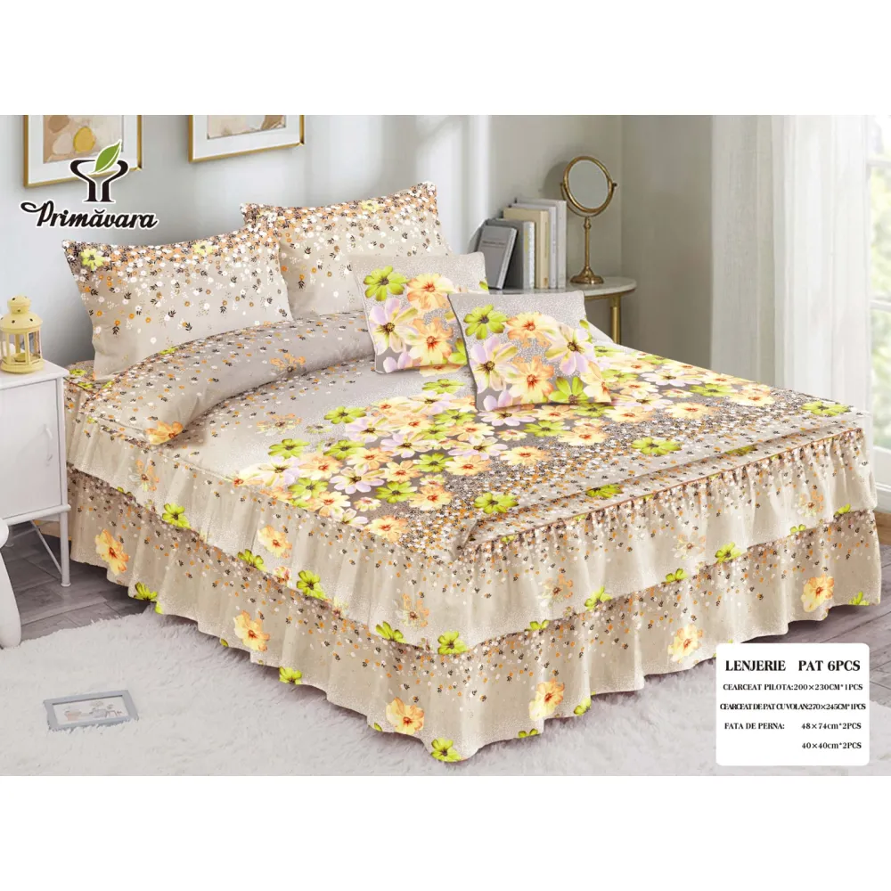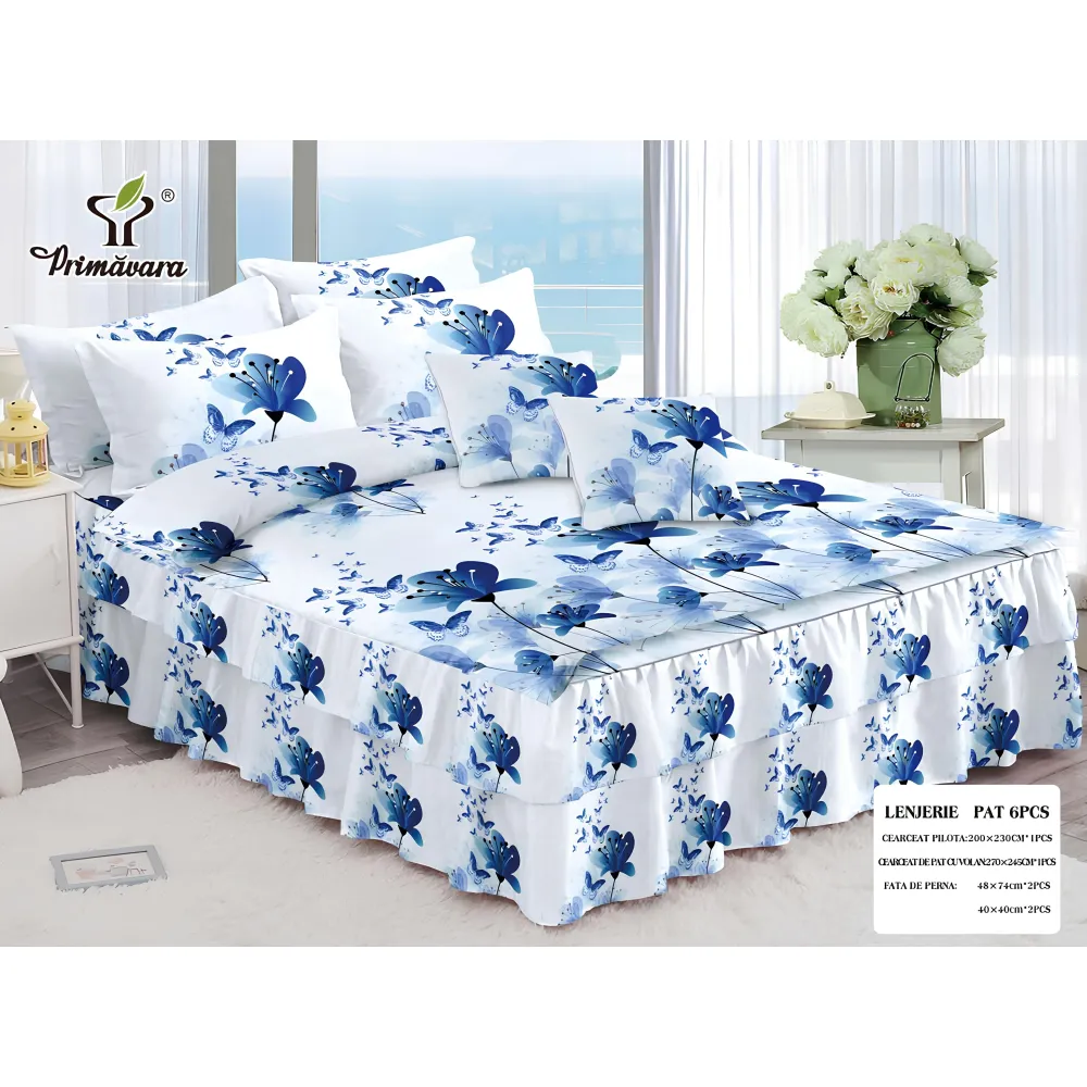 Lenjerie de Pat Dublu, Bumbac Finet 3D, 6 Piese - SIPRA2-16