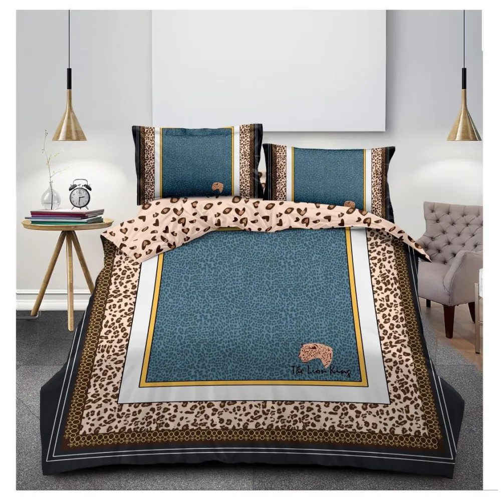 Lenjerie de pat bumbac, model cu cerb, negru si albastru - CR14