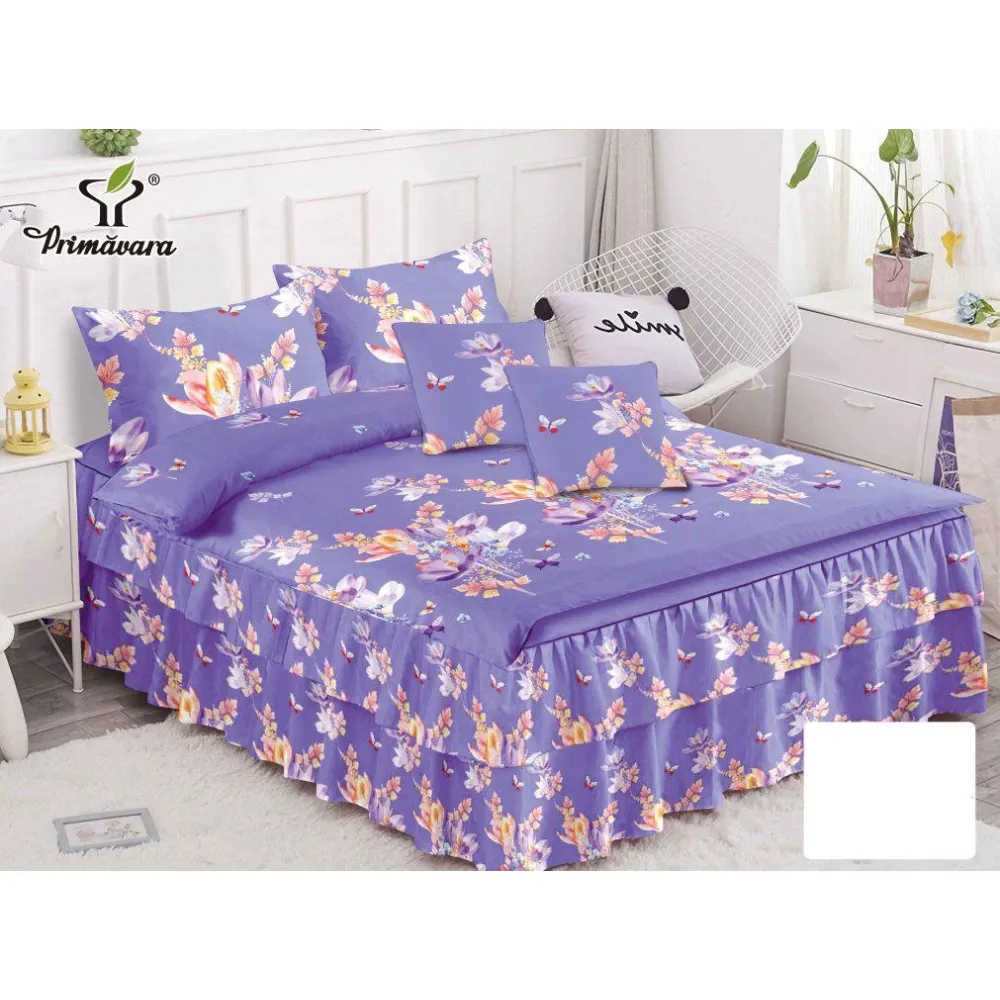 Lenjerie de Lux cu Volanase pentru pat dublu din Bumbac FINET Satinat Gros - CPL89