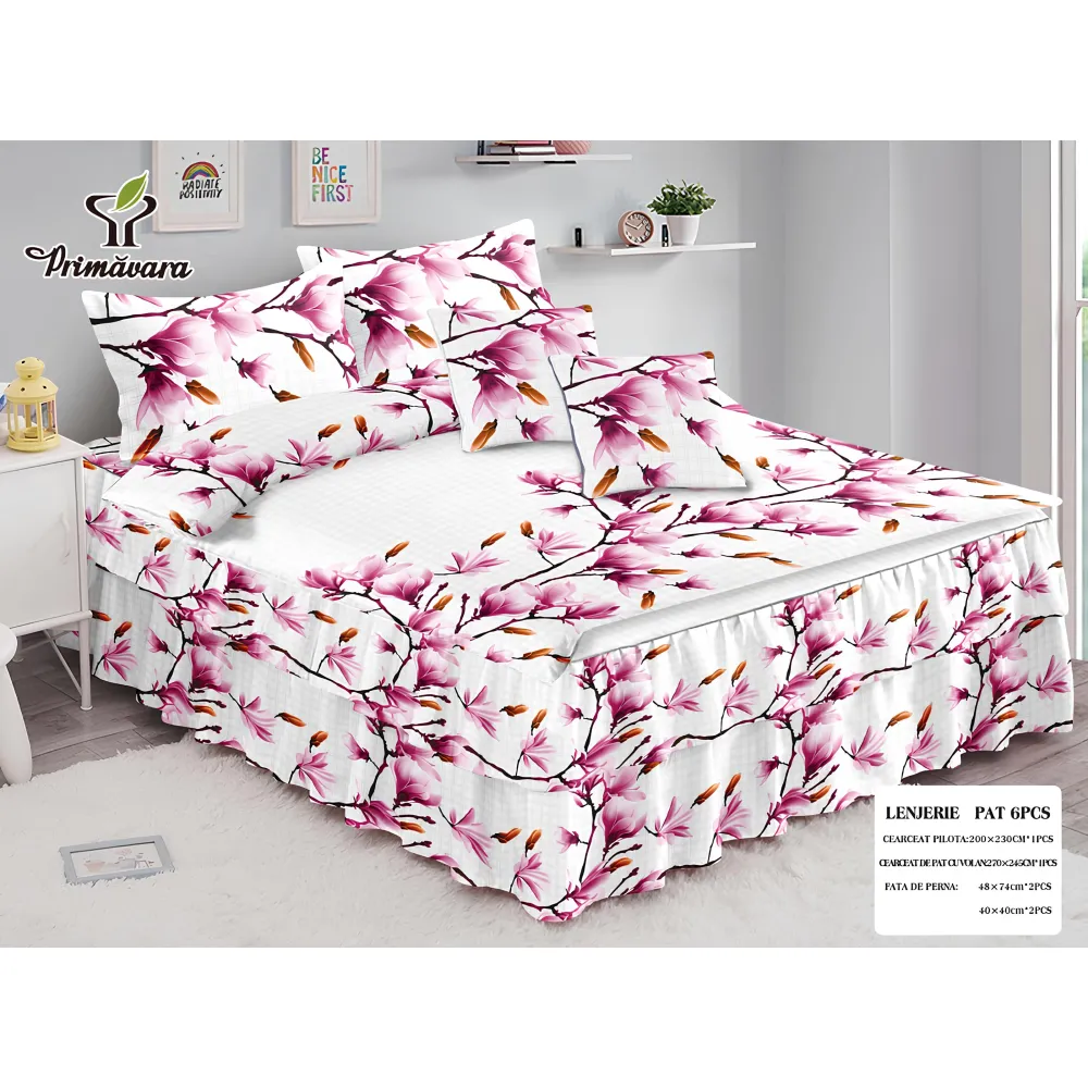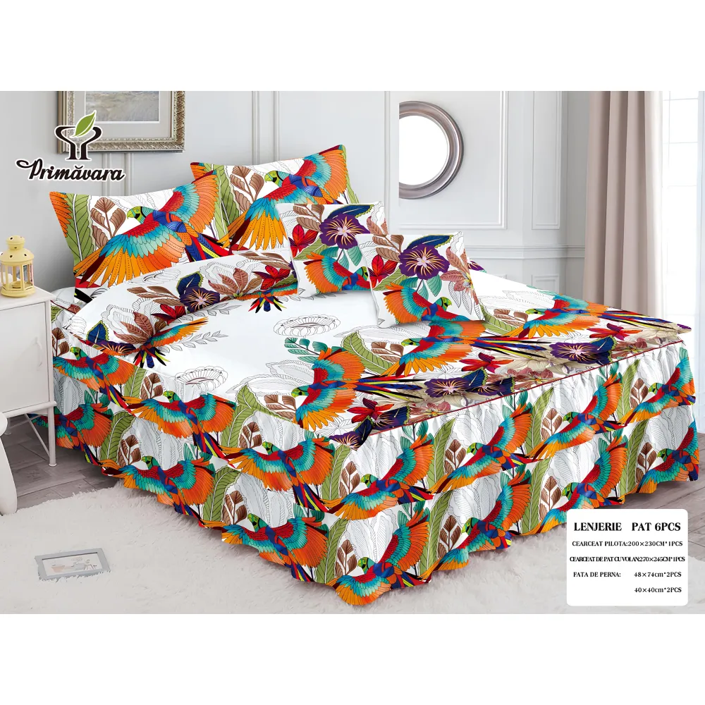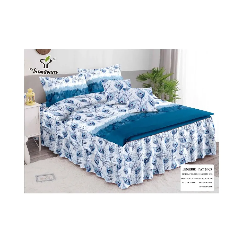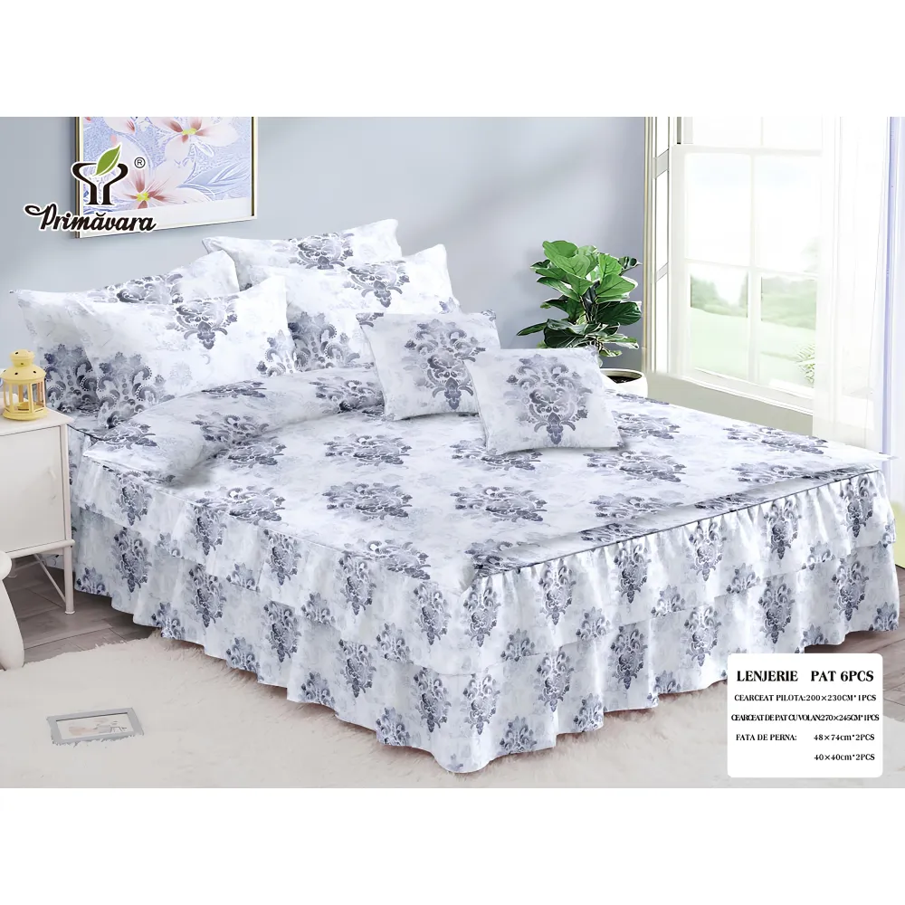 Lenjerie de Pat Bumbac Finet, 2 Persoane, 6 Piese - SIPRR60-335