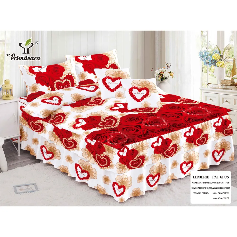 Lenjerie de lux 6 piese pentru pat dublu - bumbac finet - CPL22
