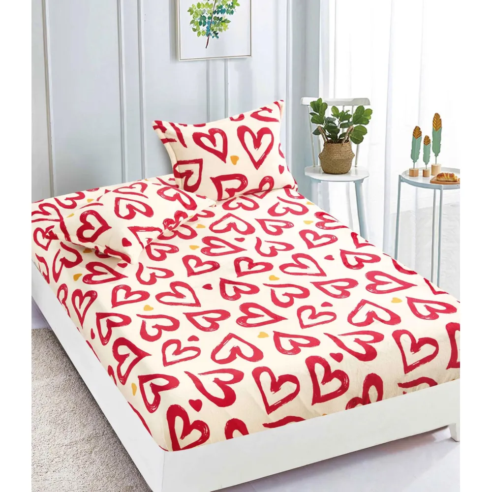 Husa de Pat Cocolino cu Elastic + 2 Fete de Perna - JO783 Inimi Rosii