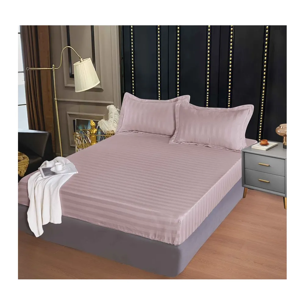 Lenjerie de Pat Dublu cu Elastic Bumbac Damasc 6 Piese, Roz Pudra - CPL339