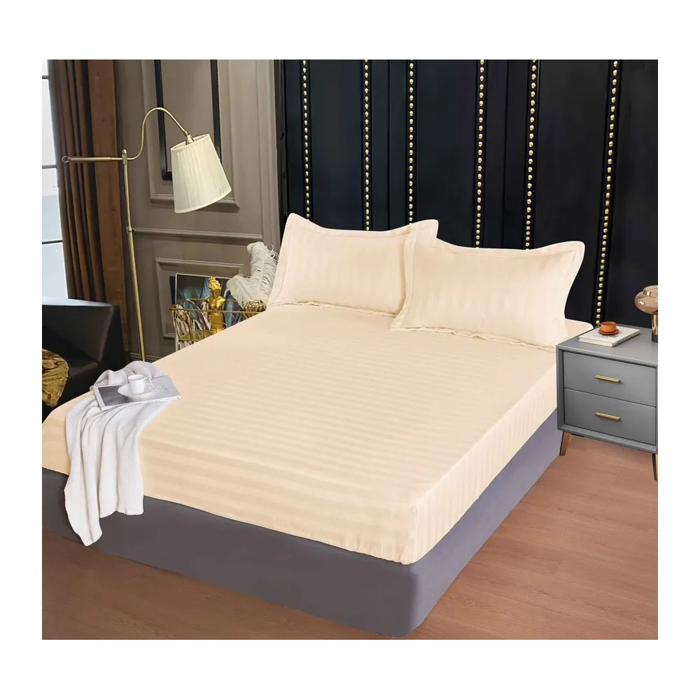 Husa de Pat + 2 Fete de Perna Bumbac Damasc 160x200cm, Crem - CPL353