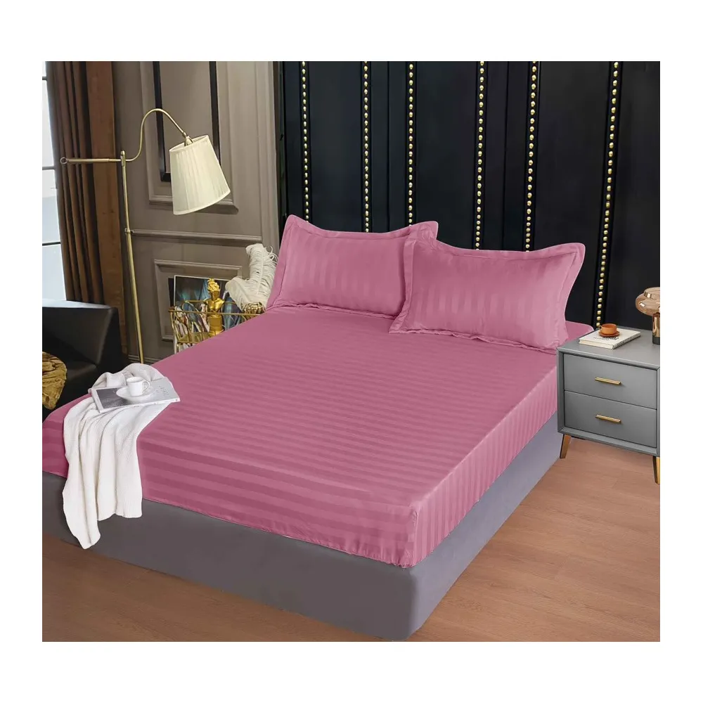 Lenjerie de Pat, Jacquard Satinat cu Elastic, pentru Pat Dublu, 6 Piese, Roz - ION91
