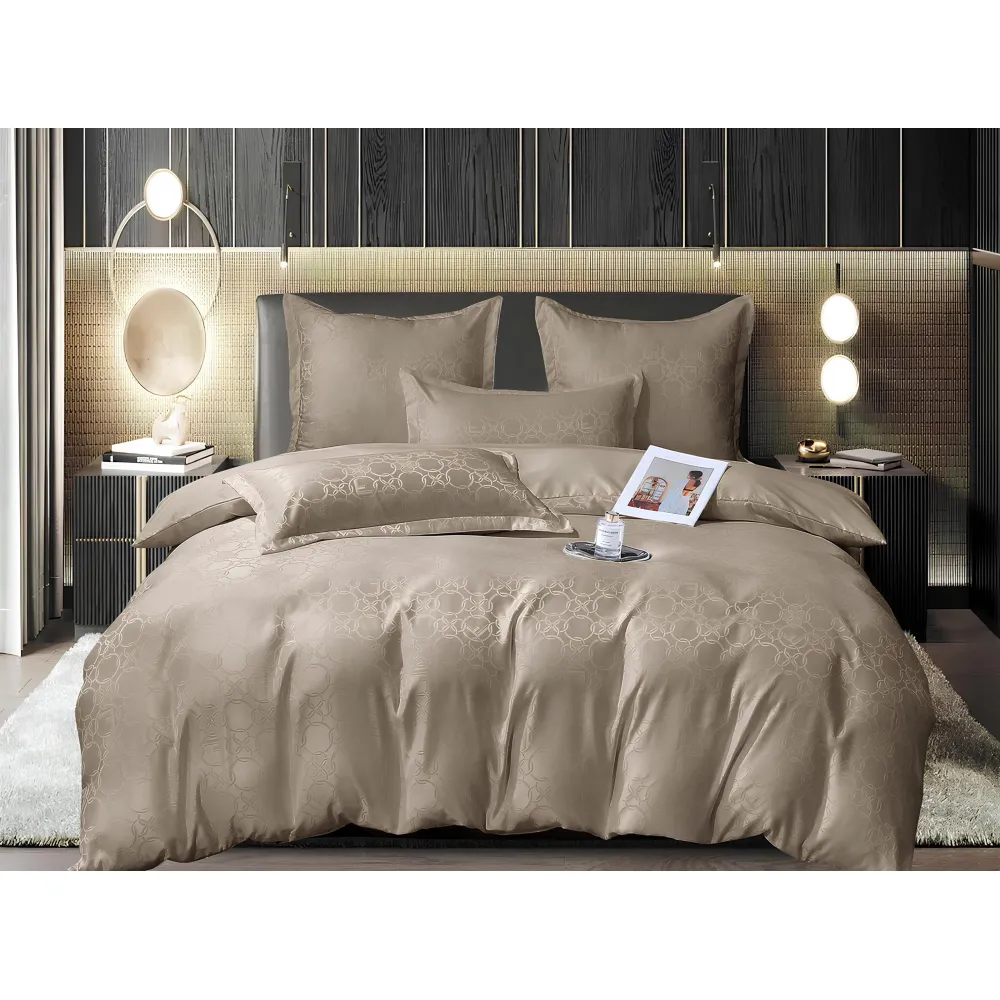 Lenjerie de Pat, Jacquard Satinat cu Elastic, pentru Pat Dublu, 6 Piese, Cappuccino - ION87