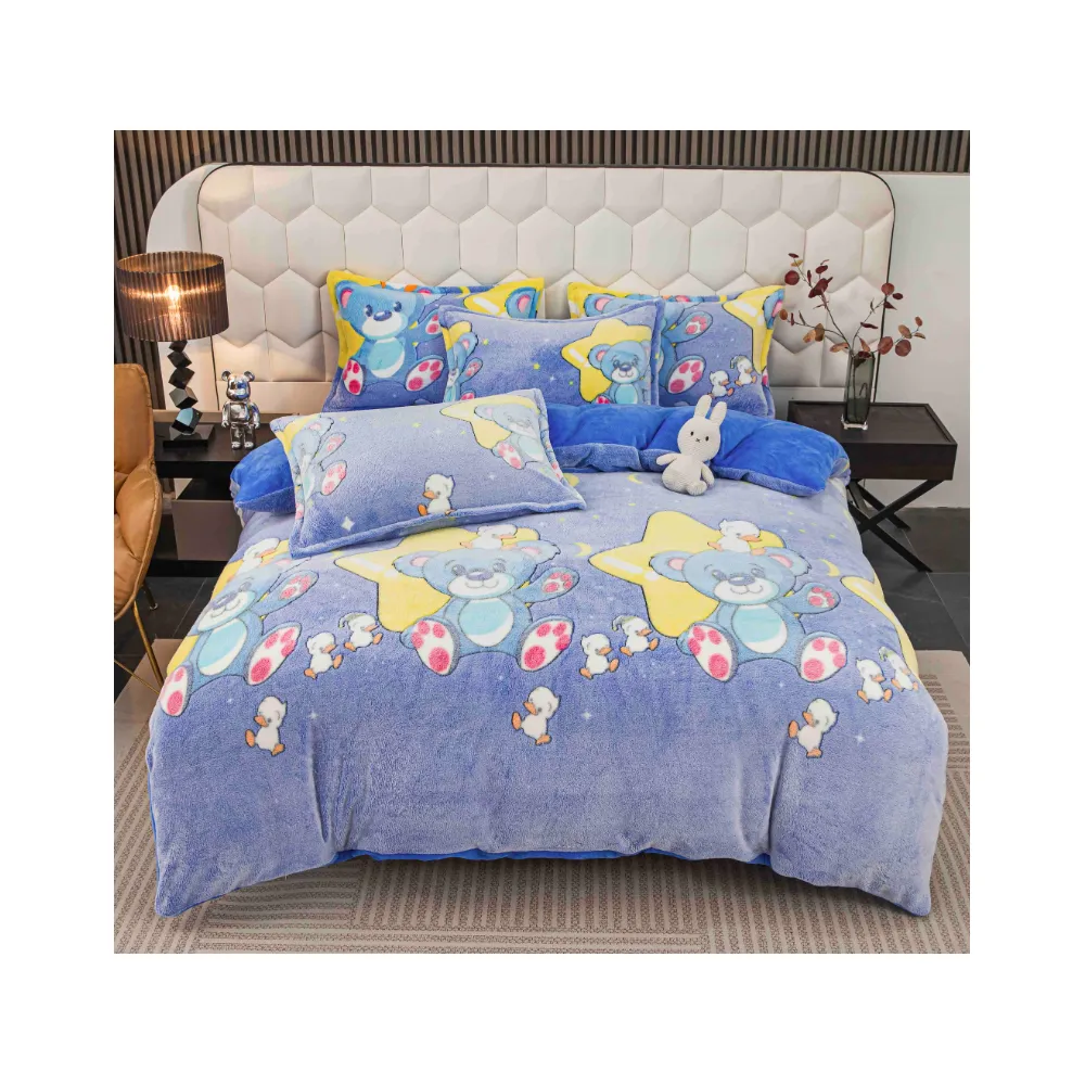 Lenjerie Cocolino 4 Piese Pentru Pat Dublu cu Elastic- JOJ815 Ursulet Albastru