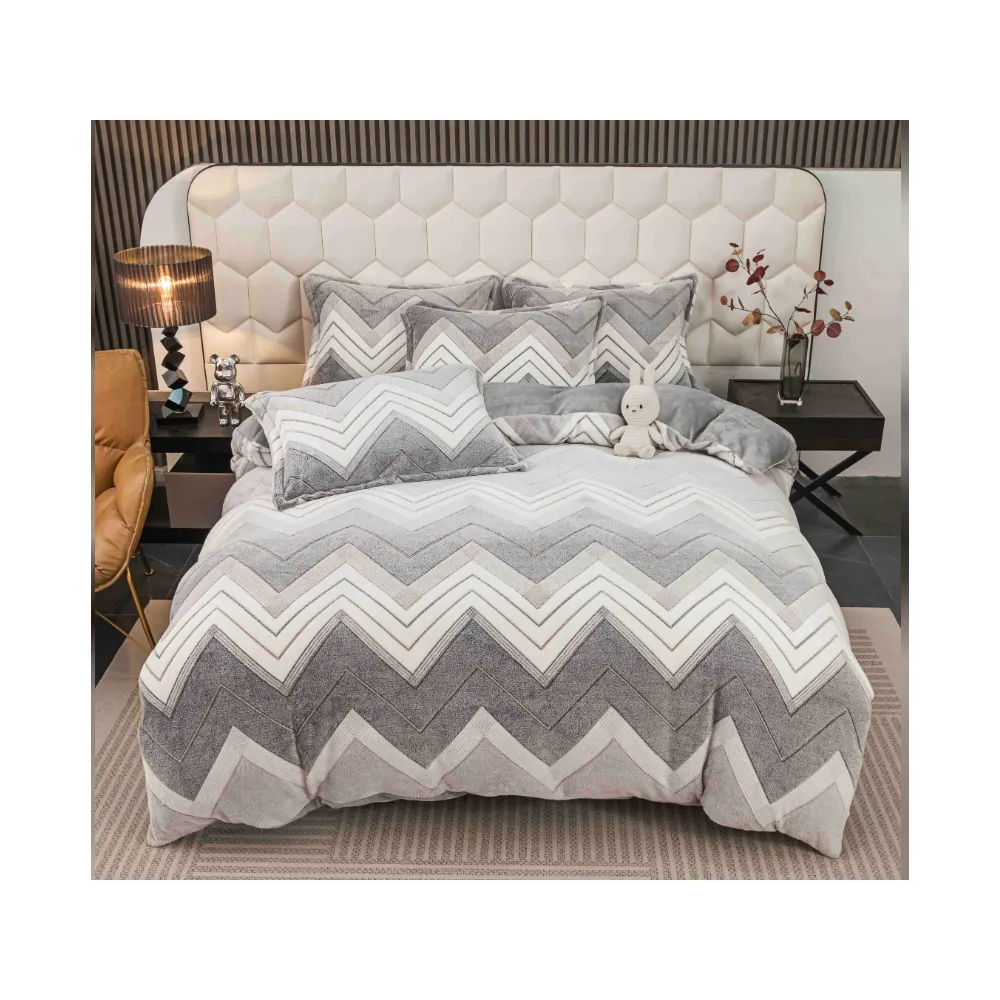 Lenjerie Cocolino 4 Piese Pentru Pat Dublu cu Elastic- JOJ817 Geometric Gri