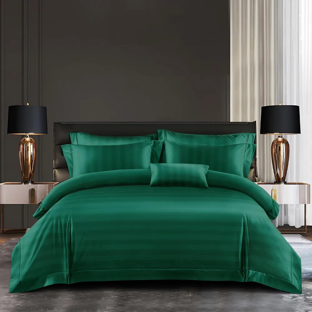 Lenjerie de Pat Damasc 6 Piese ,Verde Smarald- ION01