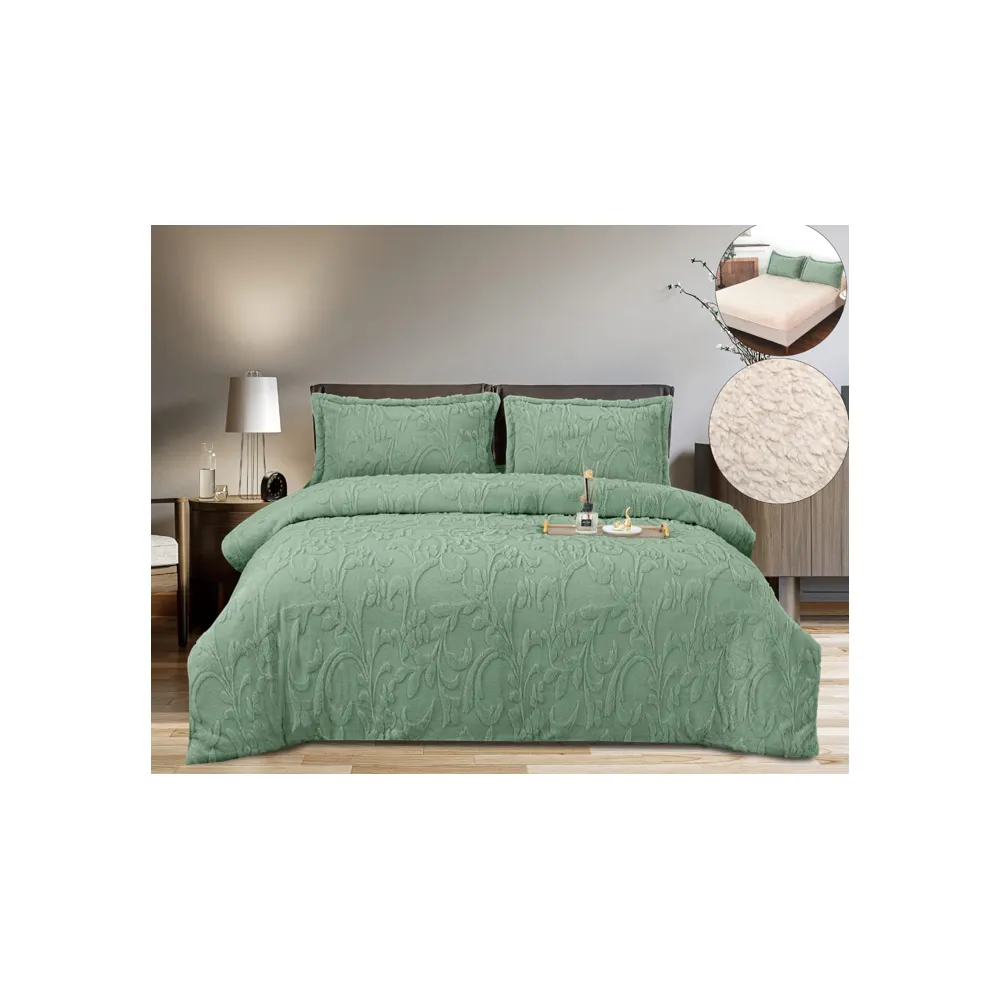 Lenjerie Cocolino 4 Piese, Blana Imitatie iepure, Pentru Pat Dublu, cu Elastic, Verde - PIT402