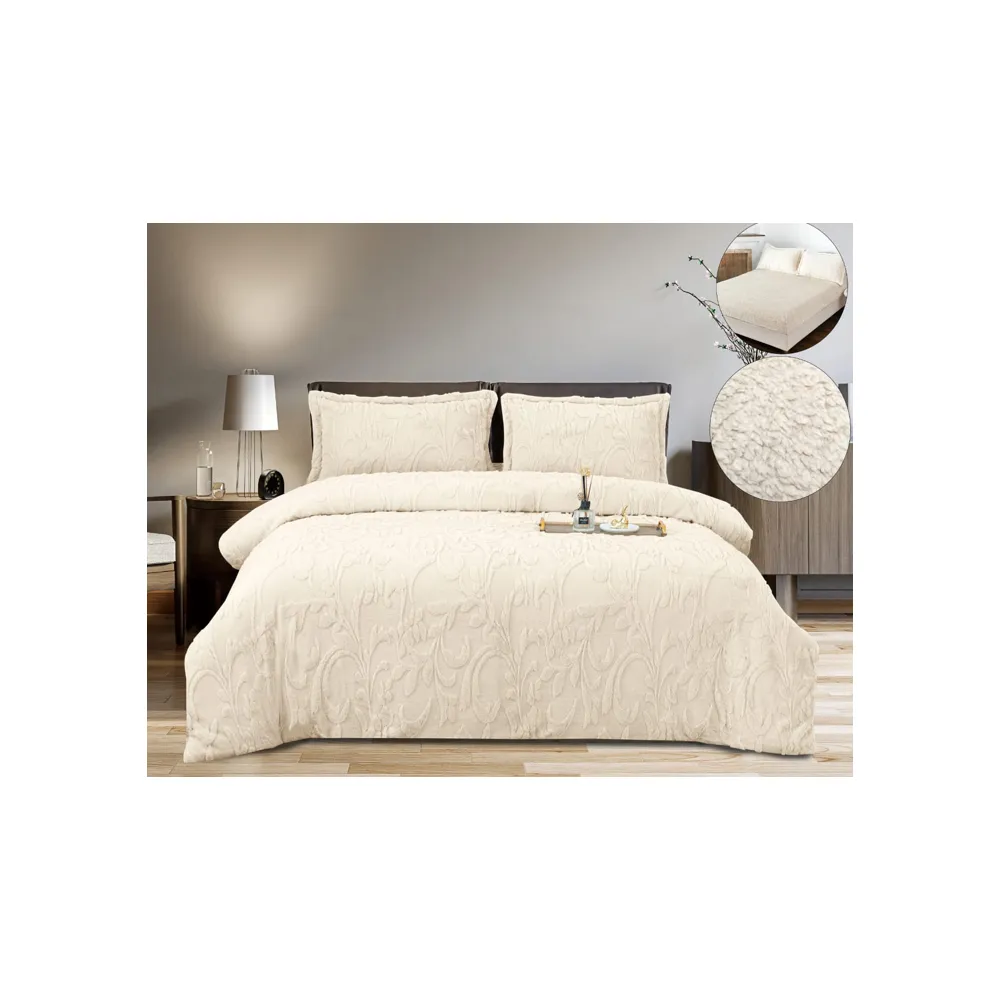 Lenjerie Cocolino 4 Piese, Blana Imitatie iepure, Pentru Pat Dublu, cu Elastic, Crem - PIT403