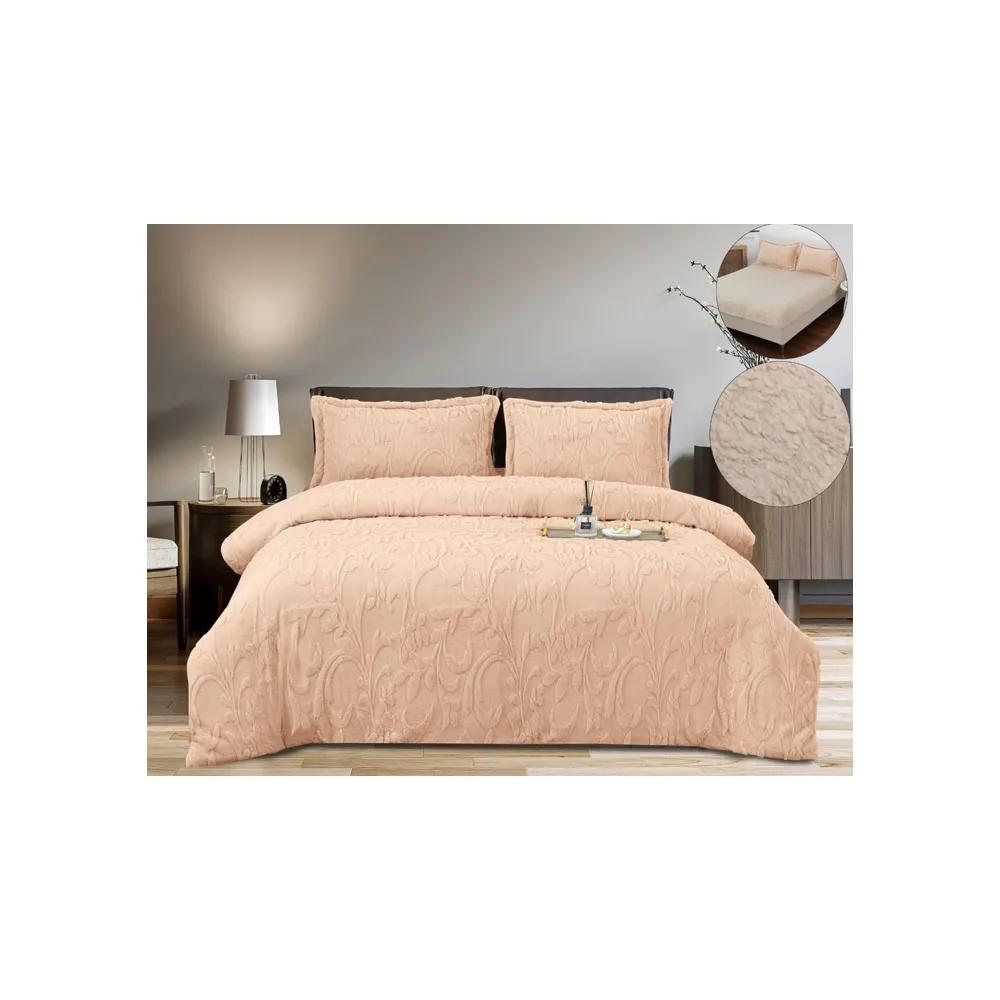 Lenjerie Cocolino 4 Piese, Blana Imitatie iepure, Pentru Pat Dublu, cu Elastic, Somon - PIT405