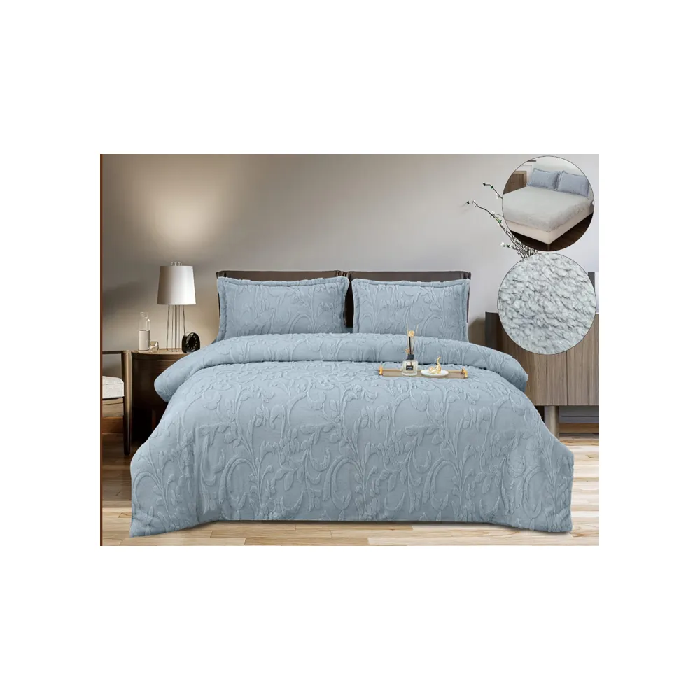 Lenjerie Cocolino 4 Piese, Blana Imitatie iepure, Pentru Pat Dublu, cu Elastic, Blue Sky - PIT401