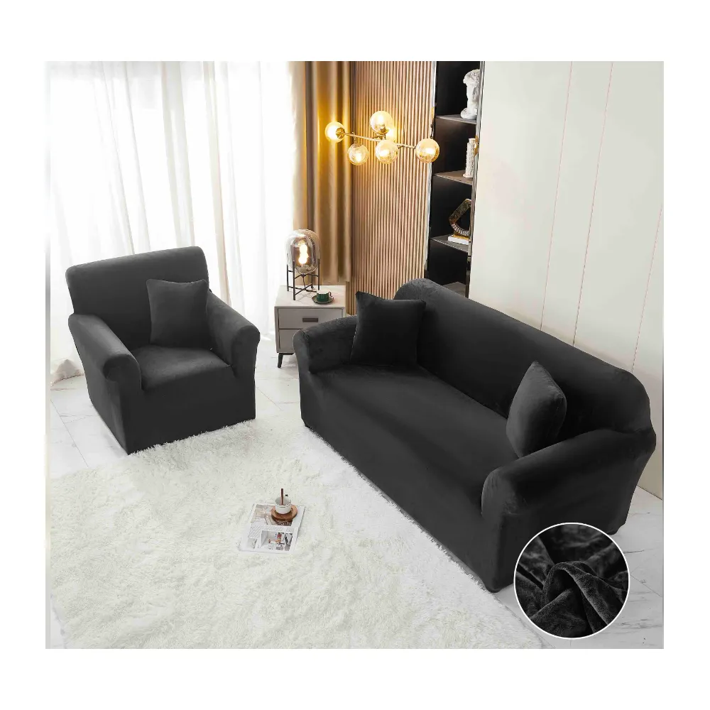 Set Huse Canapea311 Catifea, Negru - JO891