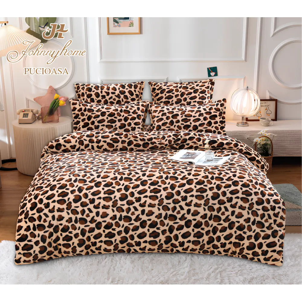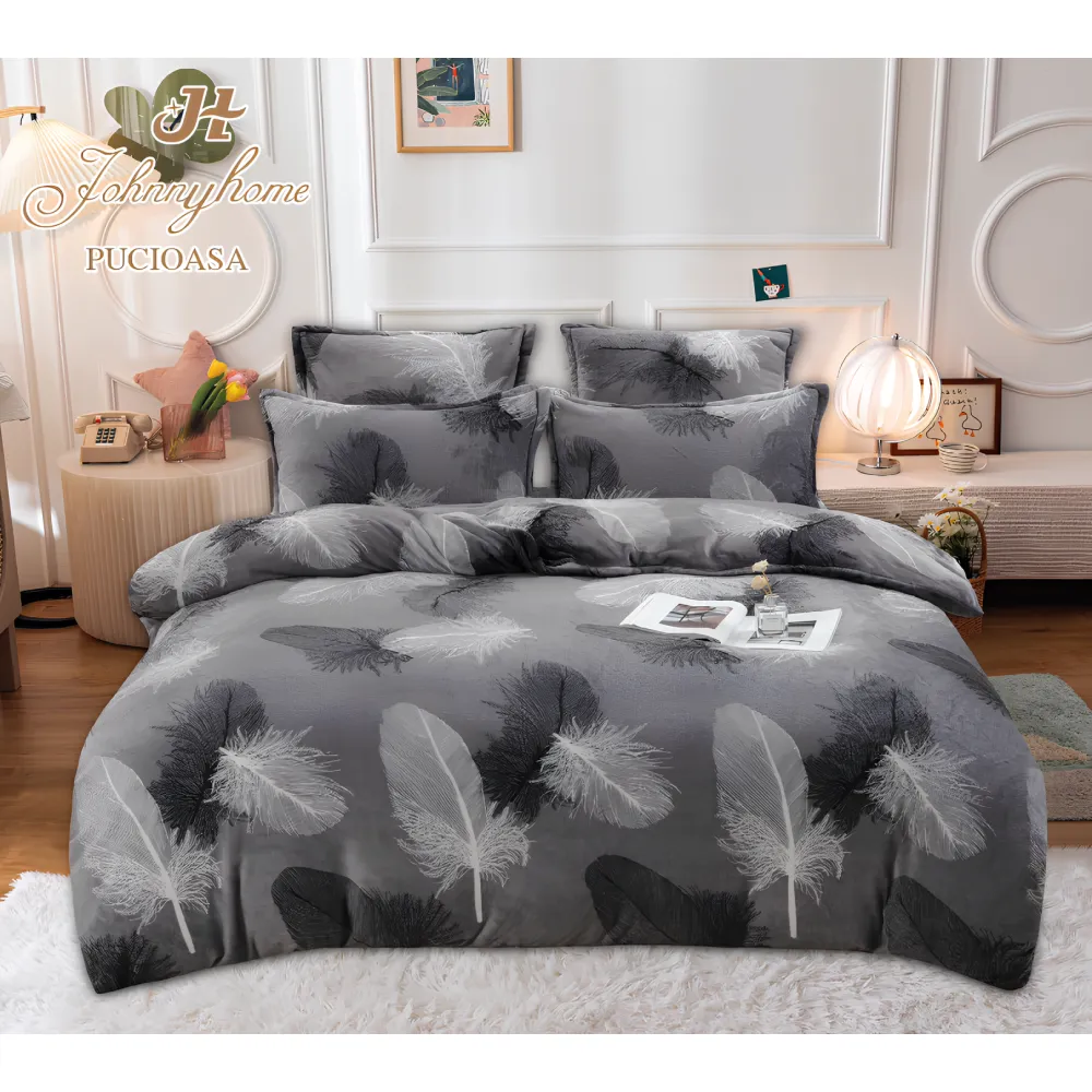 Lenjerie de Pat cu Pilota Inclusa , Cearceaf cu Elastic, 6 Piese, Blană de Iepure Artificială- JO868 Negru