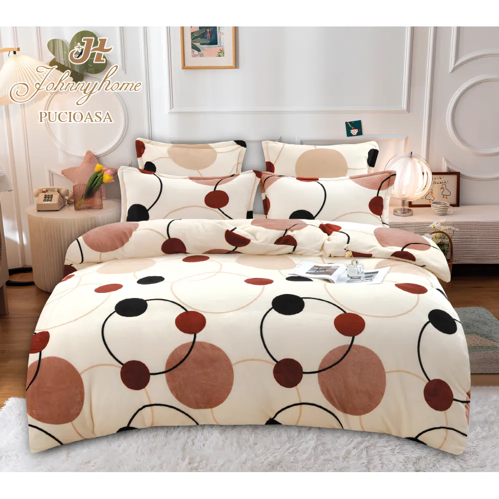 Lenjerie de Pat, din Catifea cu Broderie pentru Pat Dublu, 4 Piese, Bej - JO921