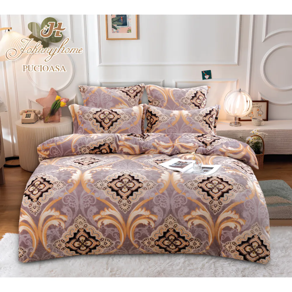 Lenjerie de Pat, din Catifea cu Broderie pentru Pat Dublu, 4 Piese, Culoarea Untului - JO924