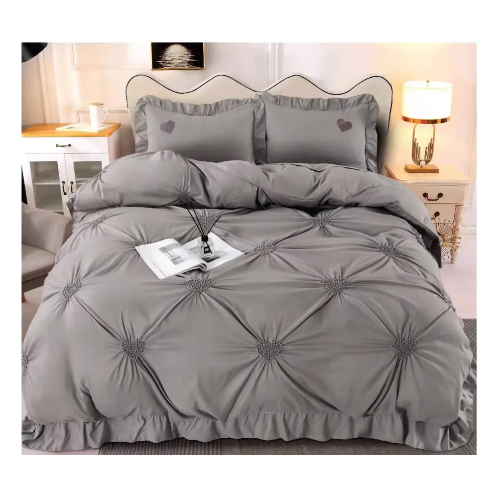 Lenjerie de Pat Finet, Pliuri Brodate, 4 piese, Gri - EAT84