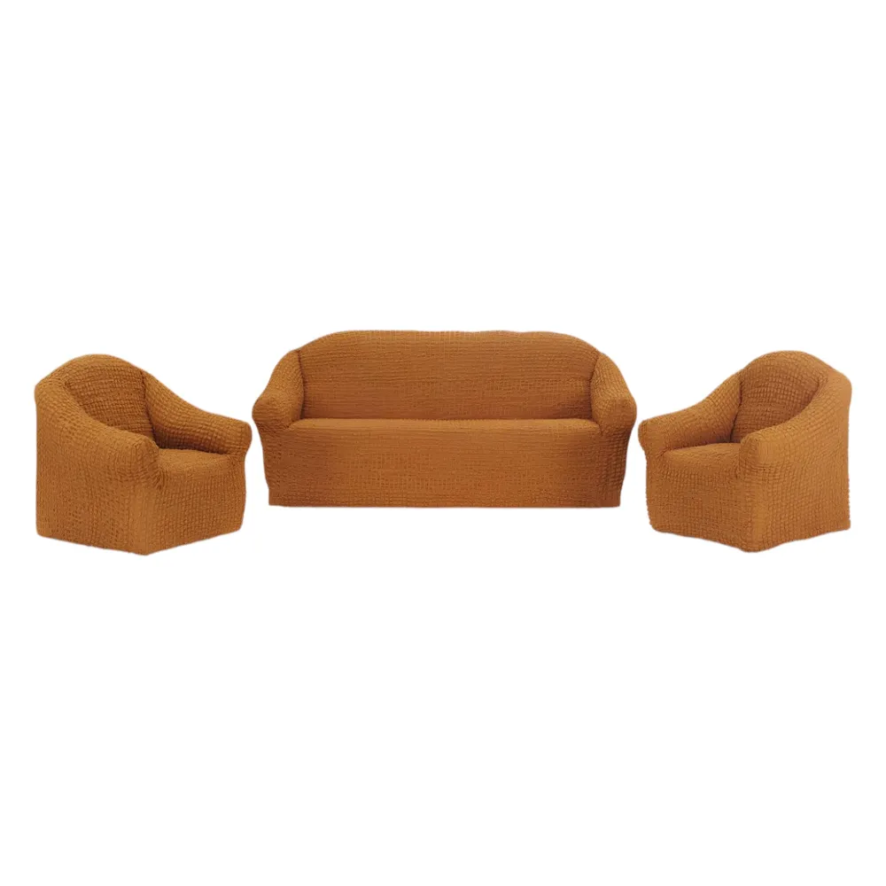 Huse Elastice si Creponate fara Volane, Canapea 3 Persoane + 2 Fotolii, Mustar - HEP205