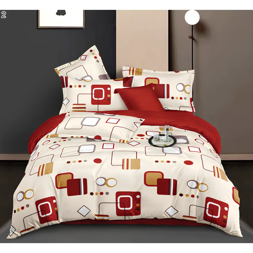 Lenjerie de Pat Dublu, Bumbac Finet-Creponat, 6 Piese, Rosu - CPL26