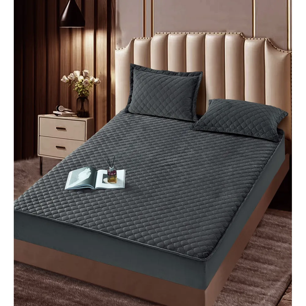 Husa De Pat 180x200 + 2 Fete De Perna Catifea, Gri Inchis -JO276